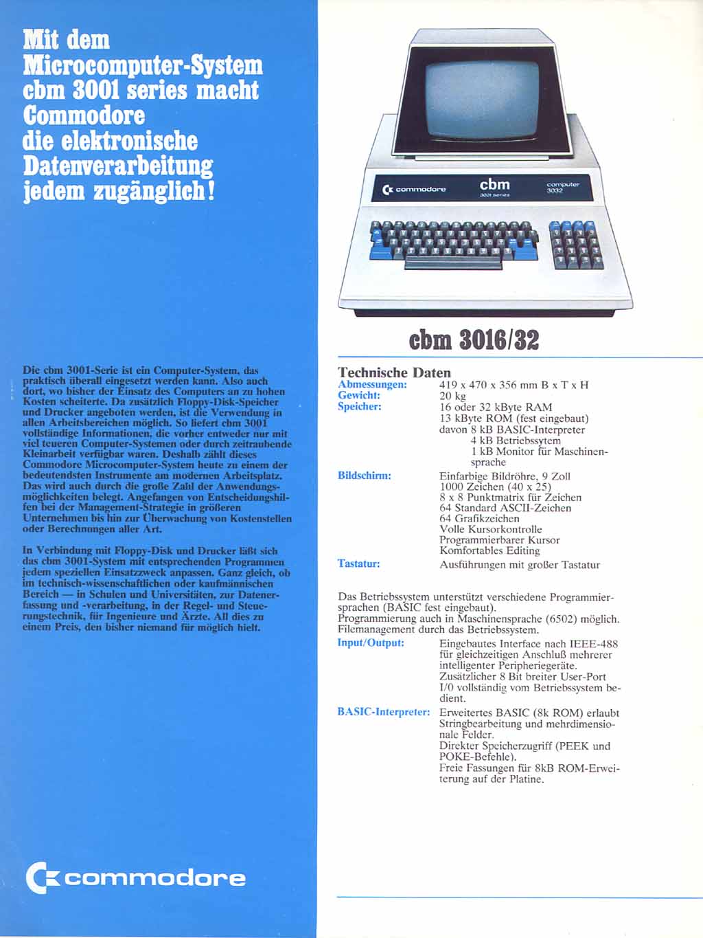 Mit der 3001er Serie bietet Commodore das erste Mal ein komplettes, wirklich benutzbares System an.