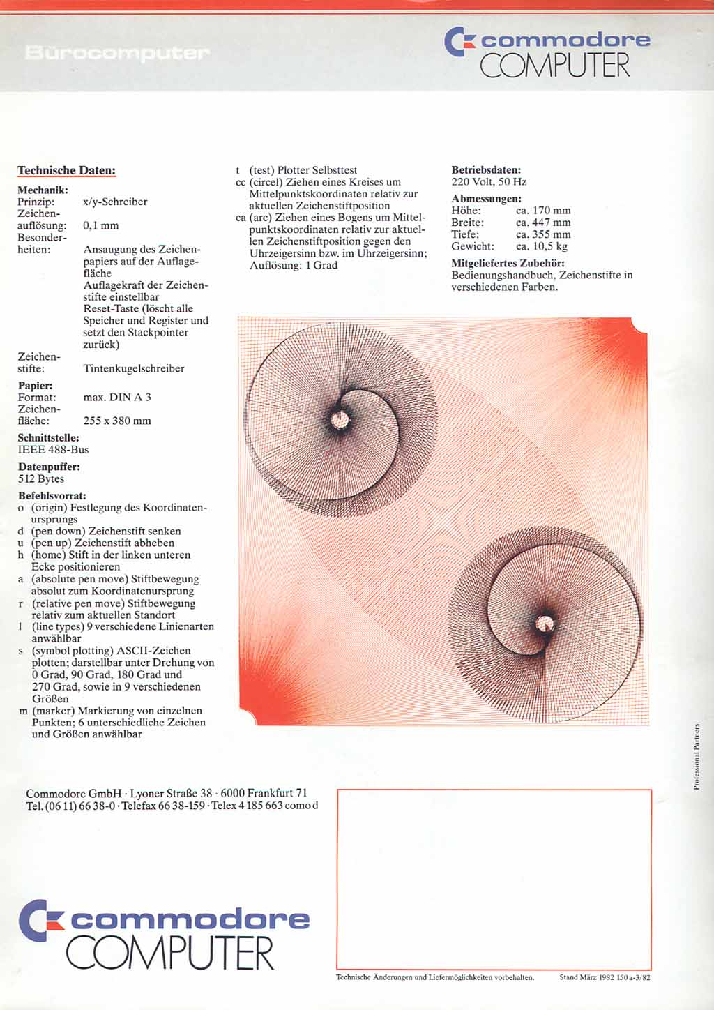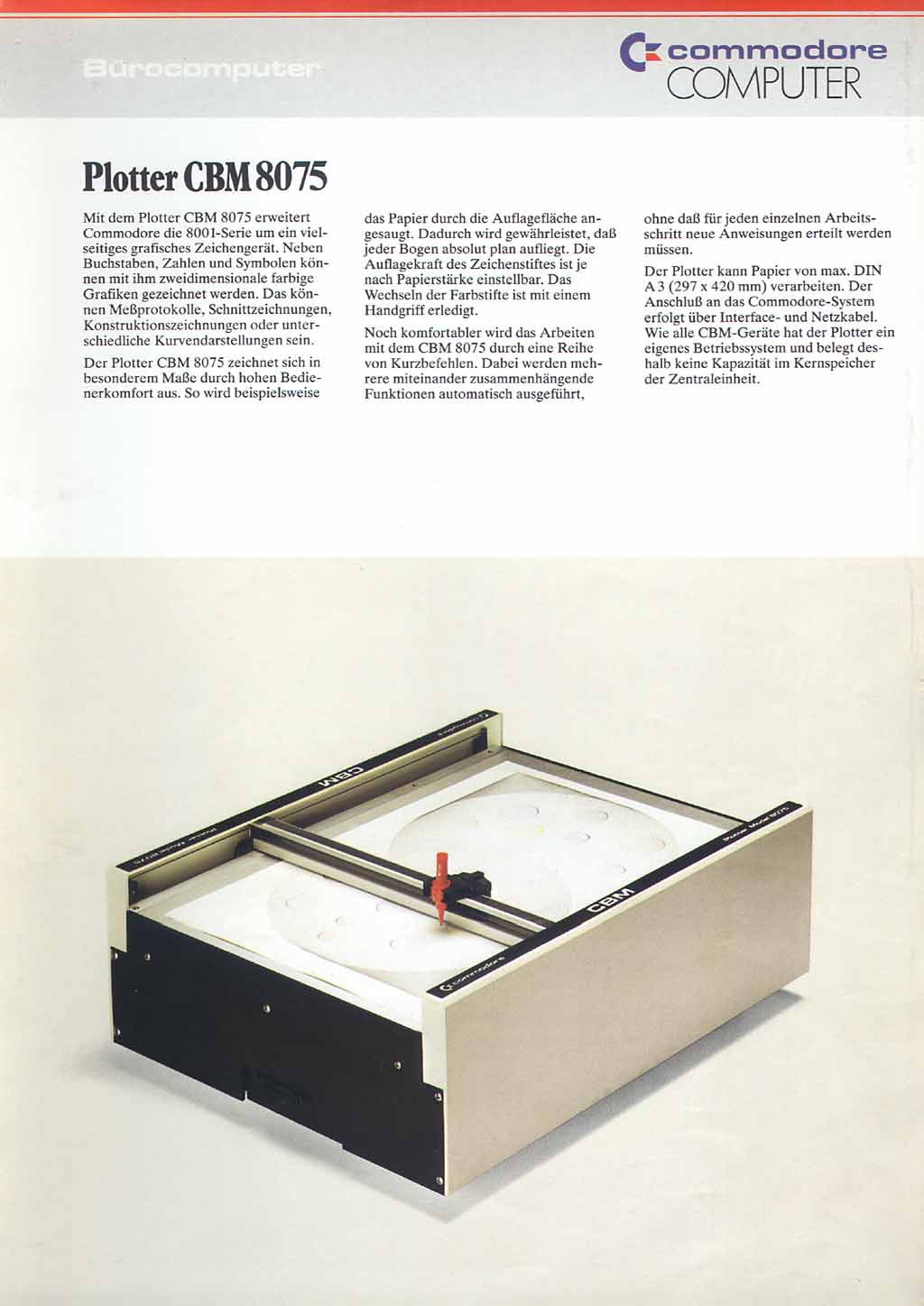 Dieser Stiftplotter ist wohl im Zusammenhang mit einer von Commodore optional erhältlichen "hochauflösenden" Grafikkarte für die 8000er als mißglückter Ansatz für CAD zu werten. Im Gegensatz zu der Grafikkarte ist mir nichts über die reale Existenz eines dieser Geräte bekannt.