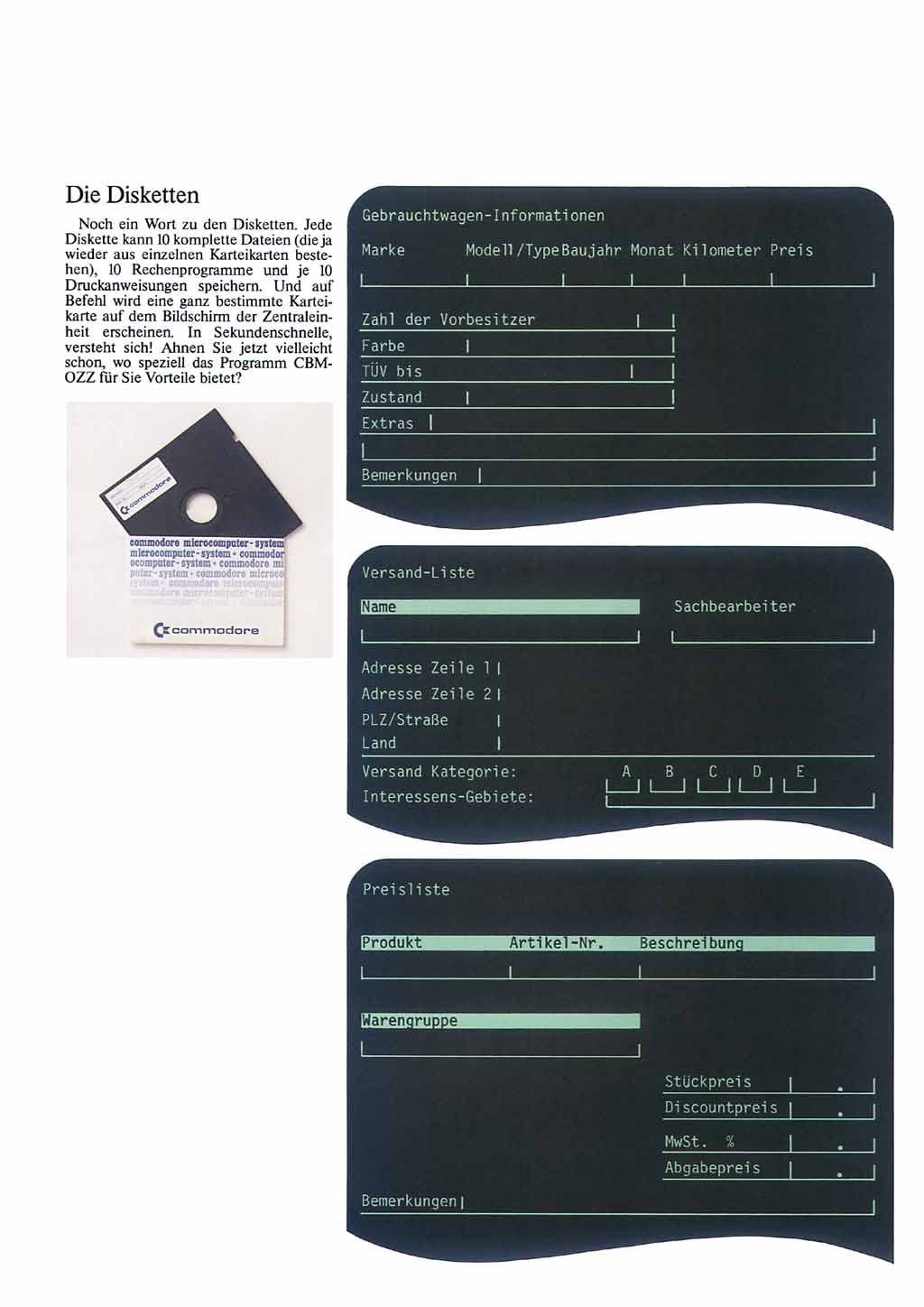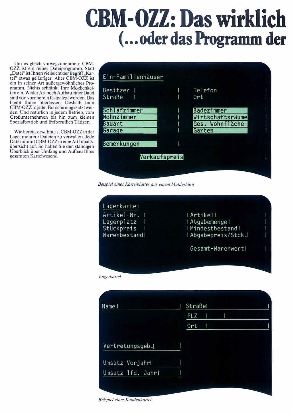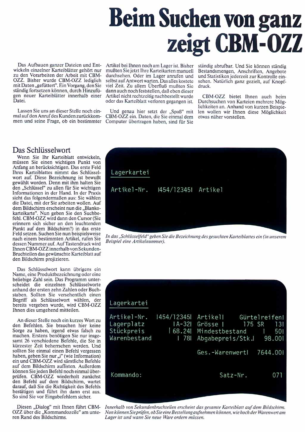 Mit der universellen Datenbank "OZZ" vervollständigte Commodore dann Ende des Jahres die Programmpalette für die 8000er Rechner zu einem "Office-Paket".