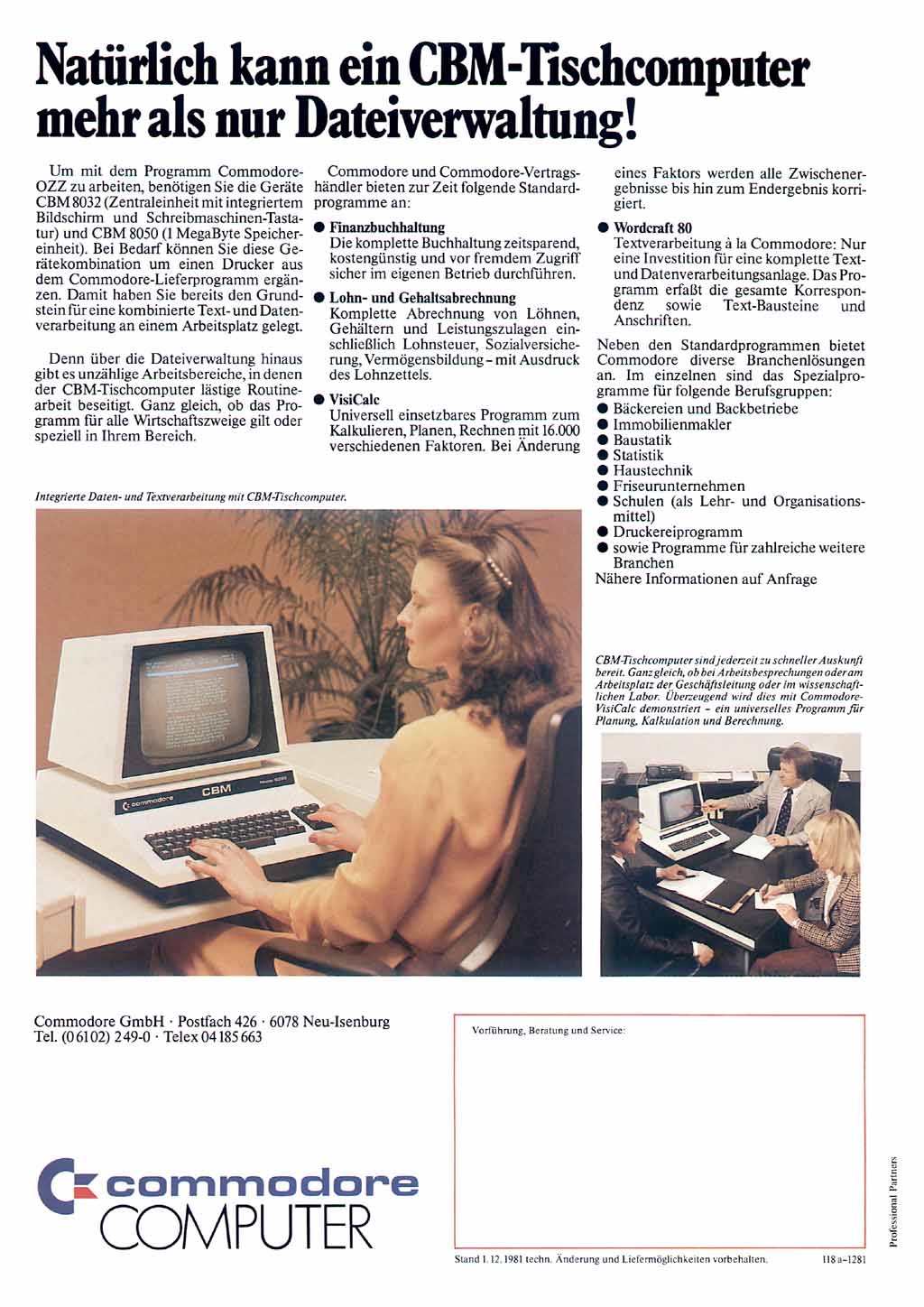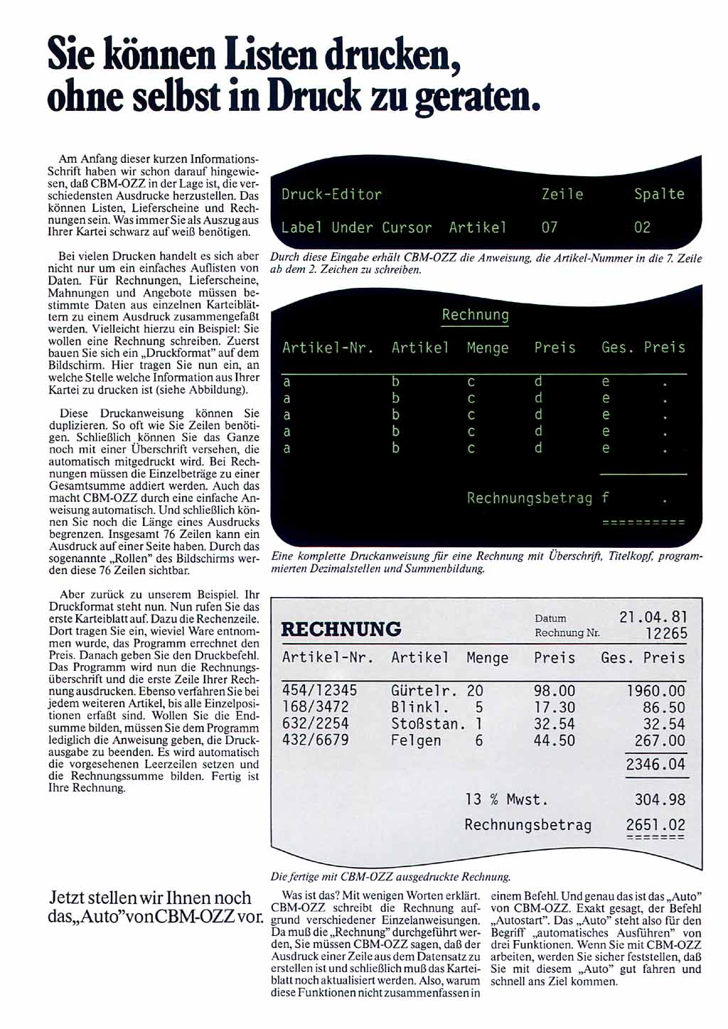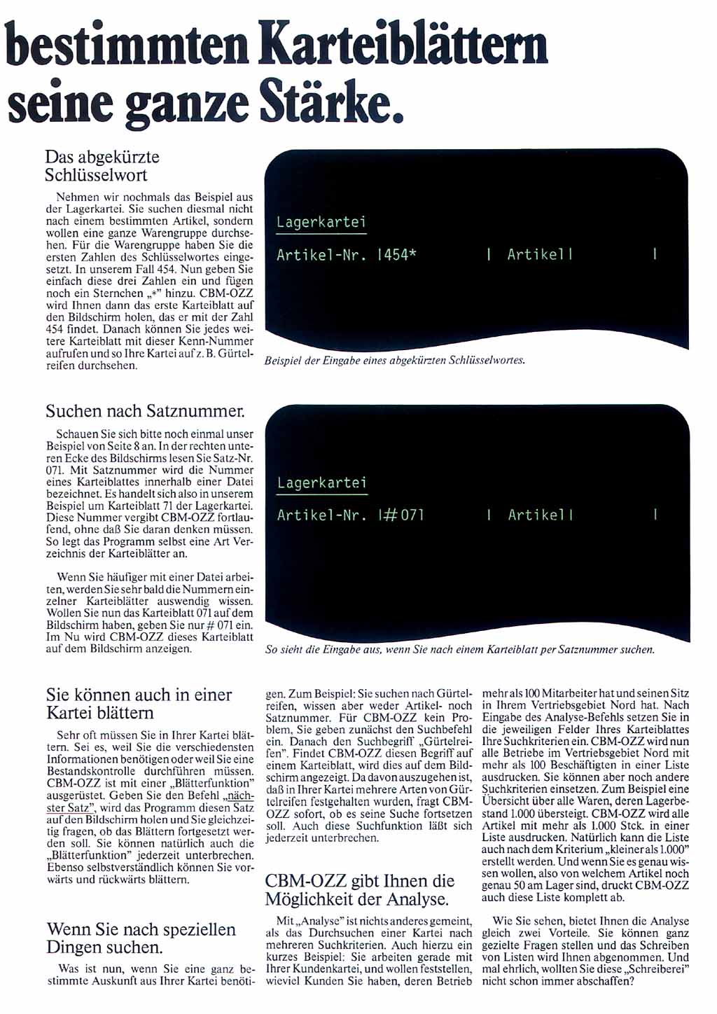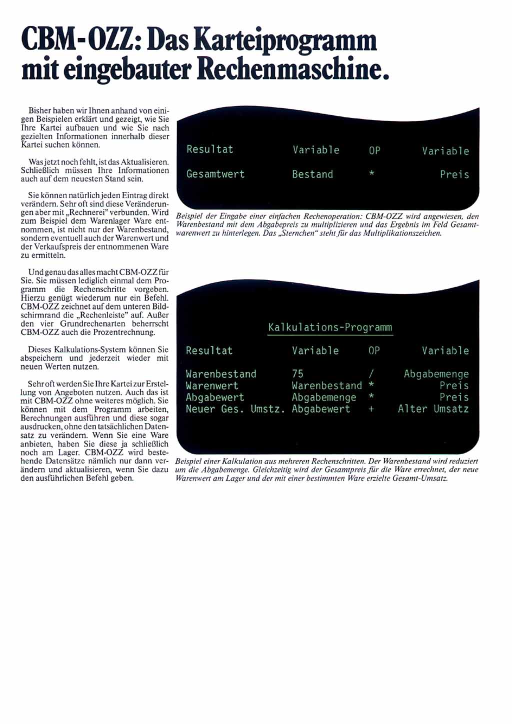 Mit der universellen Datenbank "OZZ" vervollständigte Commodore dann Ende des Jahres die Programmpalette für die 8000er Rechner zu einem "Office-Paket".