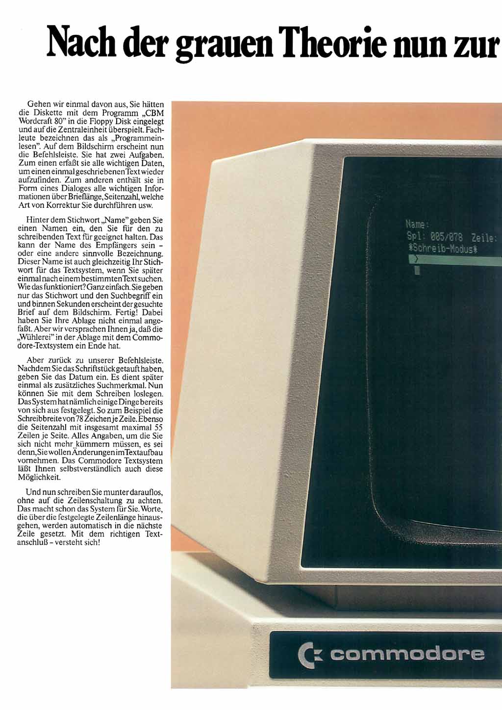 Ein Prospekt aus dem Jahre 1981, der die, schon sehr komfortable, Textverarbeitung "Wordcraft 80" aus dem Hause Commodore beschreibt.