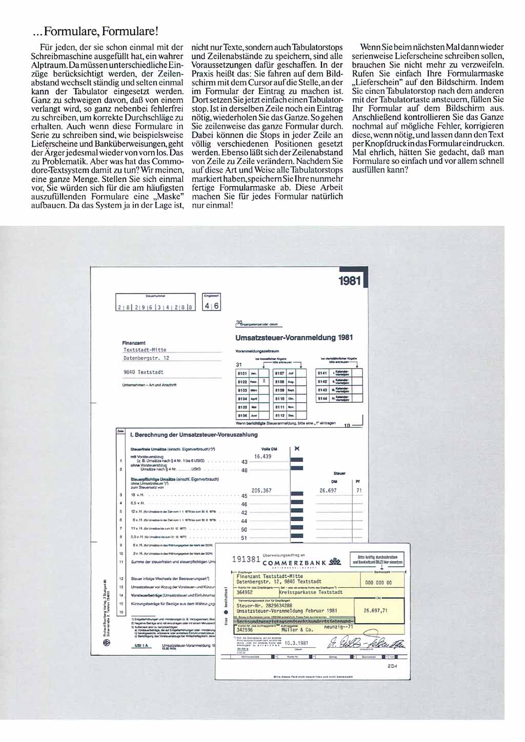 Ebenfalls aus dem Jahr 1981 stammt diese Werbung für die Commodore-Version der bekannten Tabellenkakulation "VisiCalc".